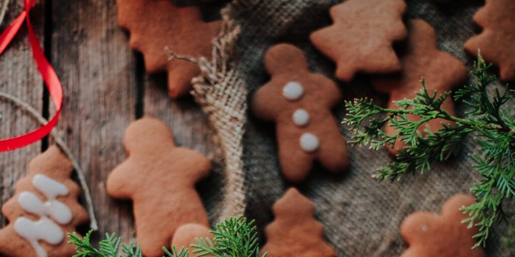 Watch the lights twinkle. Close your eyes and listen to a favorite holiday song or a loved one’s purring (smiles). Inhale the aroma of freshly baked gingerbread. Try to detect each individual spice. Savor that piece of orange. Think of what a gift to your body that is.